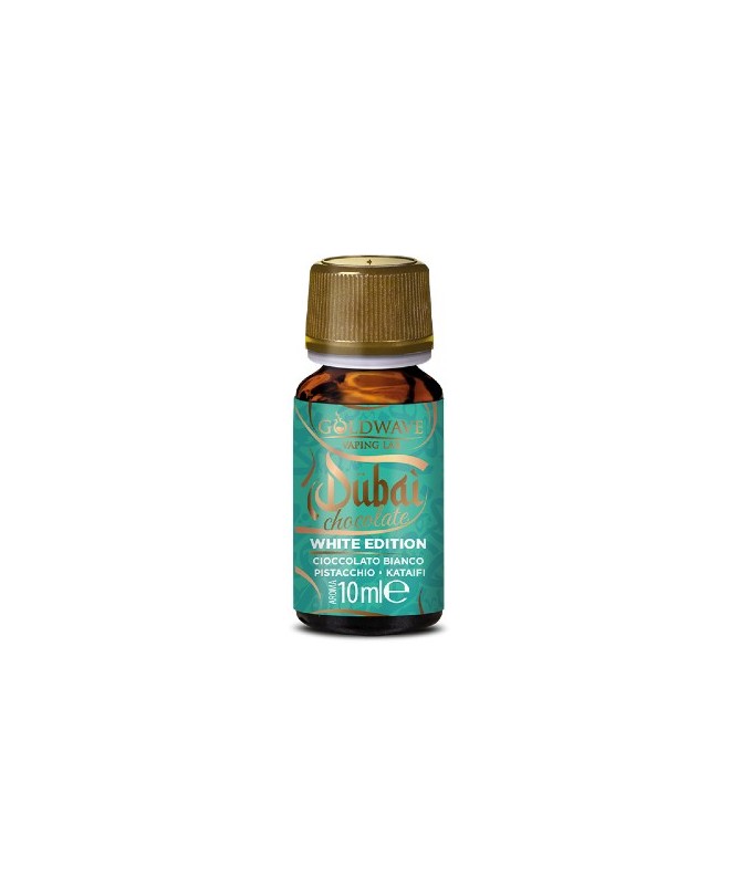 WHITE EDITION Dubai Chocolate è un aroma realizzato da Goldwave al sapore di Cioccolato Bianco, crema al Pistacchio e Pasta Kataifi.